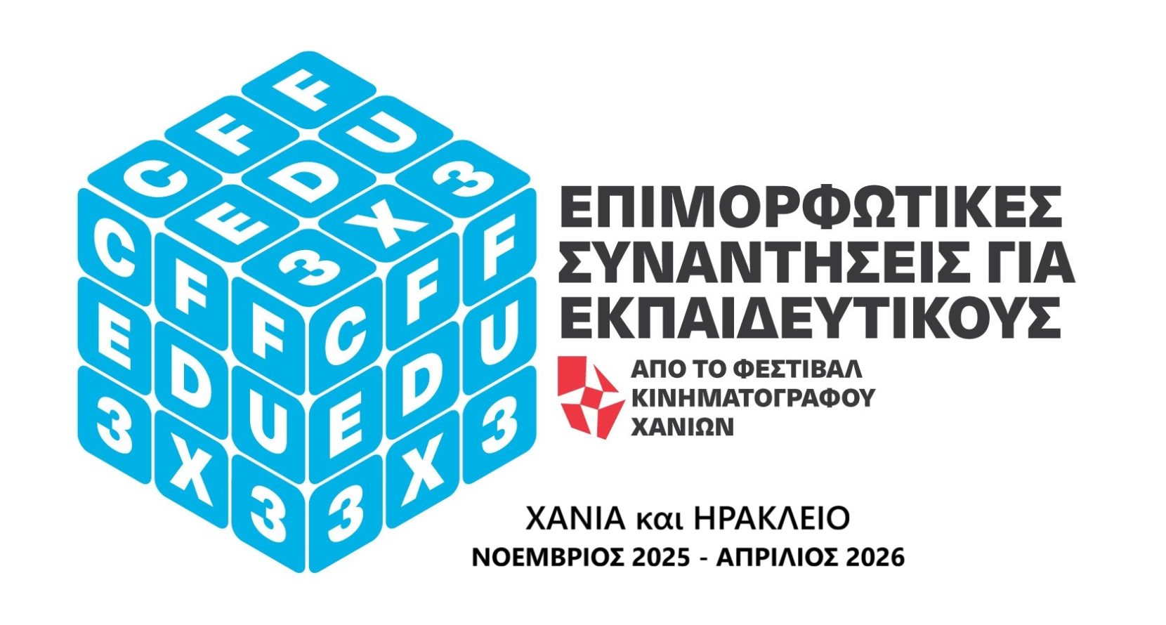 3Χ3 Μαθήματα κινηματογραφικού γραμματισμού (δια ζώσης με φυσική παρουσία στις πόλεις των Χανίων και του Ηρακλείου, Νοέμβριος 2025 – Απρίλιος 2026) Το Φεστιβάλ Κινηματογράφου Χανίων προσκαλεί τους εκπαιδευτικούς Νηπιαγωγείων, Δημοτικών Σχολείων, Γυμνασίων/Λυκείων και τους εμψυχωτές εργαστηρίων σε μία σειρά δια ζώσης εργαστηρίων, κατανεμημένων σε τρία επιμορφωτικά τριήμερα (3×3) τα οποία θα υλοποιηθούν από τον Νοέμβριο 2025 έως