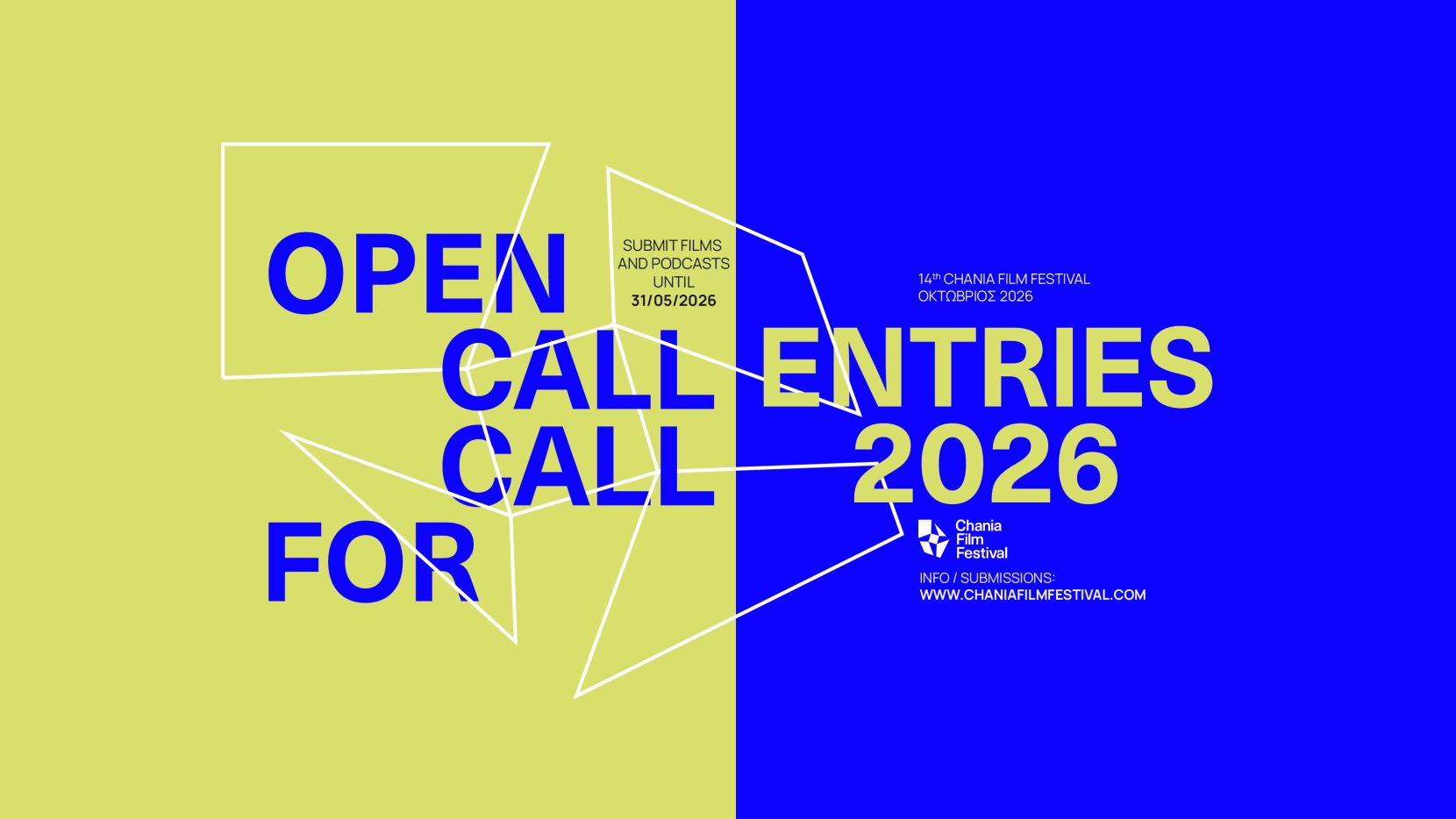 ΔΕΛΤΙΟ ΤΥΠΟΥ | PRESS RELEASE Ξεκίνησε η υποβολή ταινιών για το 14ο Φεστιβάλ Κινηματογράφου Χανίων Ξεκίνησε, την 1η Ιανουαρίου 2026, η υποβολή ταινιών για το 14ο Φεστιβάλ Κινηματογράφου Χανίων & το 14ο Φεστιβάλ Κινηματογράφου Χανίων στην Εκπαίδευση. Το 14ο CFF θα πραγματοποιηθεί από τις 21-31 Οκτωβρίου 2026 στα Χανιά της Κρήτης. Η τελική ημερομηνία υποβολής των ταινιών είναι την Κυριακή 31 Μαΐου 2026. Σημειώνουμε ότι στο φεστιβάλ υπάρχει ειδικό τμήμα και