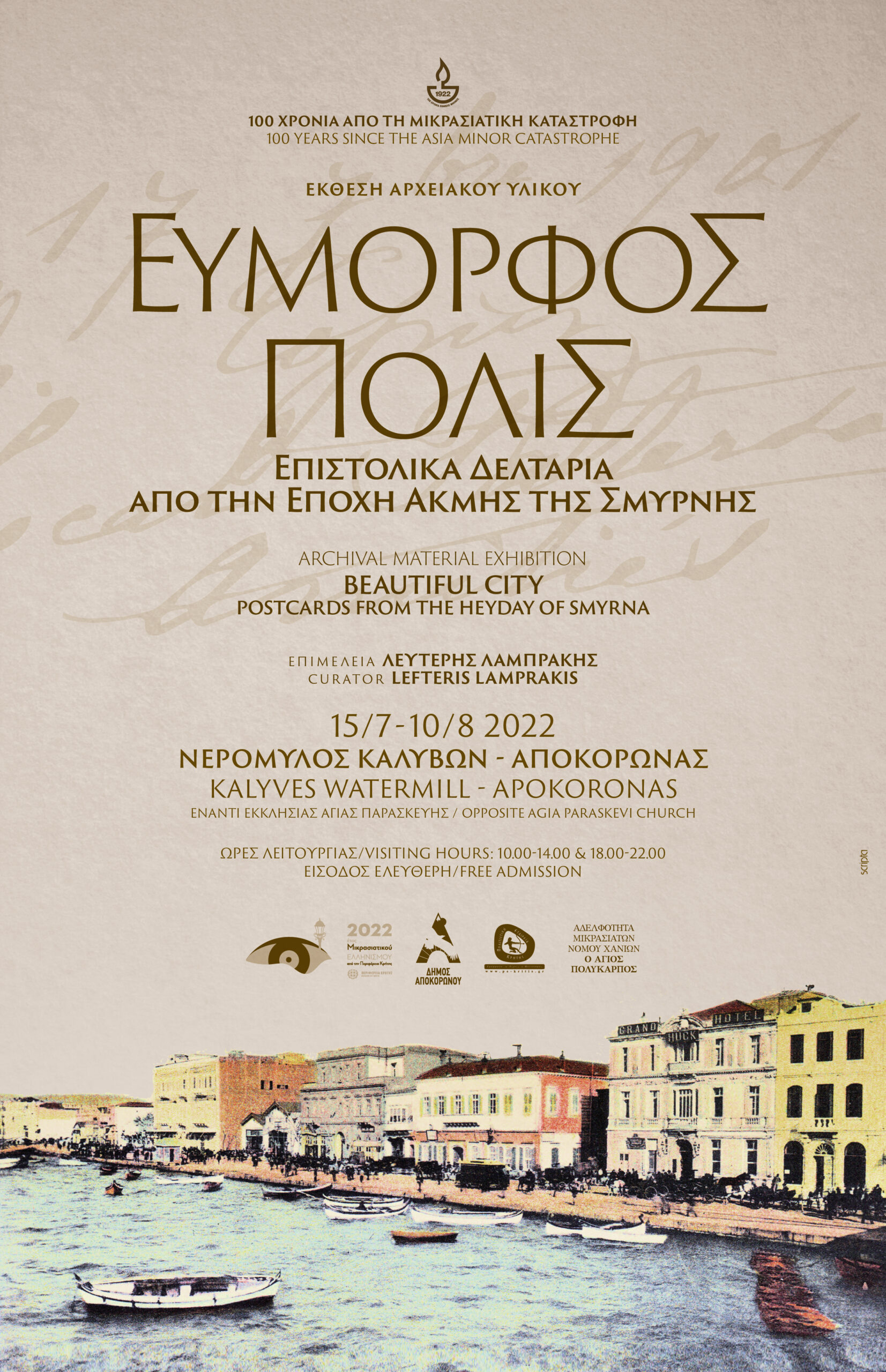 Η Περιφέρεια Κρήτης – Περιφερειακή Ενότητα Χανίων, ο Δήμος Αποκορώνου, η Αδελφότητα Μικρασιατών Χανίων «Ο ΑΓΙΟΣ ΠΟΛΥΚΑΡΠΟΣ» και η Πολιτιστική Εταιρεία Κρήτης συνδιοργανώνουν την Έκθεση Αρχειακού Υλικού, εύμορφος πόλις